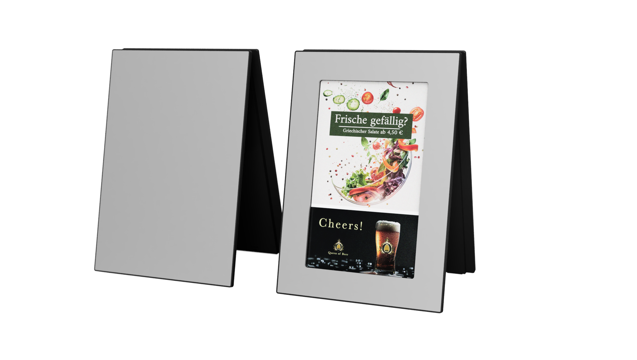 Experience vibrant, true-to-life menus and promotions on a sleek single-face display or a dual-side unit—powered by ultra-low-energy e-paper for weeks of crisp, battery-lasting engagement.