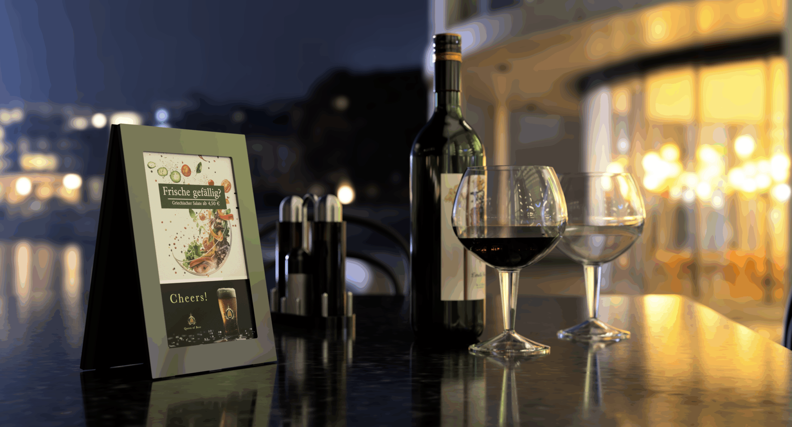 Serve reservation notifications, daily specials, or personalized greetings right at the table without interrupting service flow, keeping guests informed and engaged in an elegant, unobtrusive way.